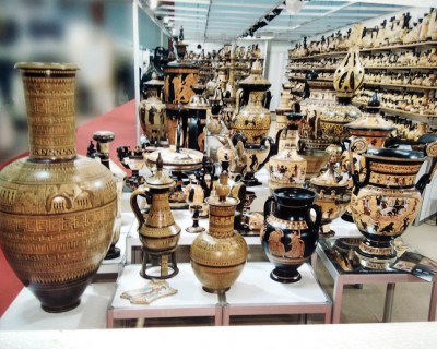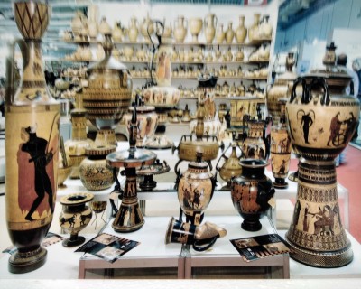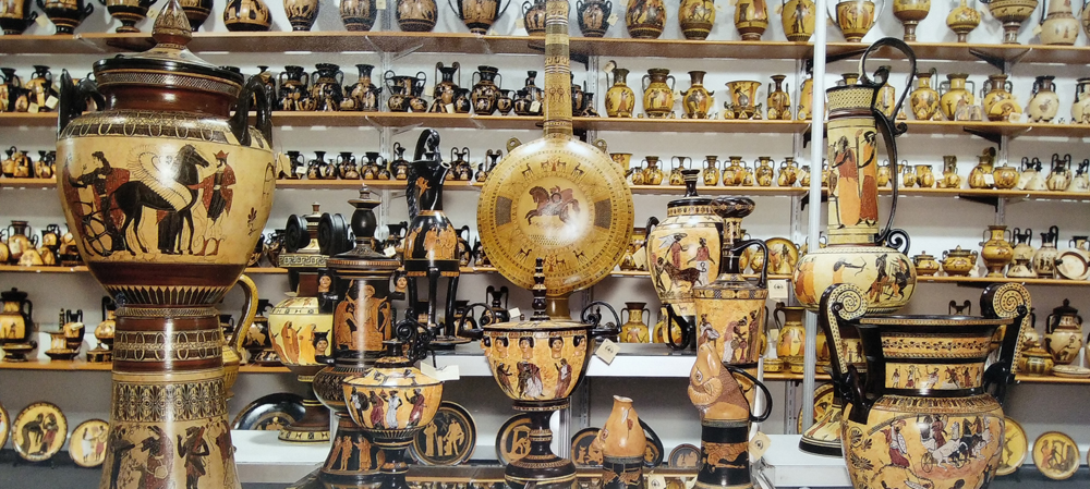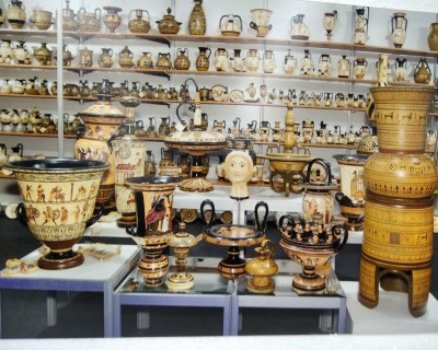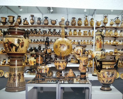 Αττικά – Μινωικά – Μυκηναϊκά – Κορινθιακά αγγεία. Πολλές φορές τα παρουσιάζουμε και με τεχνκή παλαίωσης.